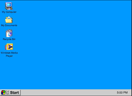 V systému Windows 95 se poprvé objevuje nabídka Start, hlavní panel a tlačítka pro minimalizaci, maximalizaci a zavření v každém okně.